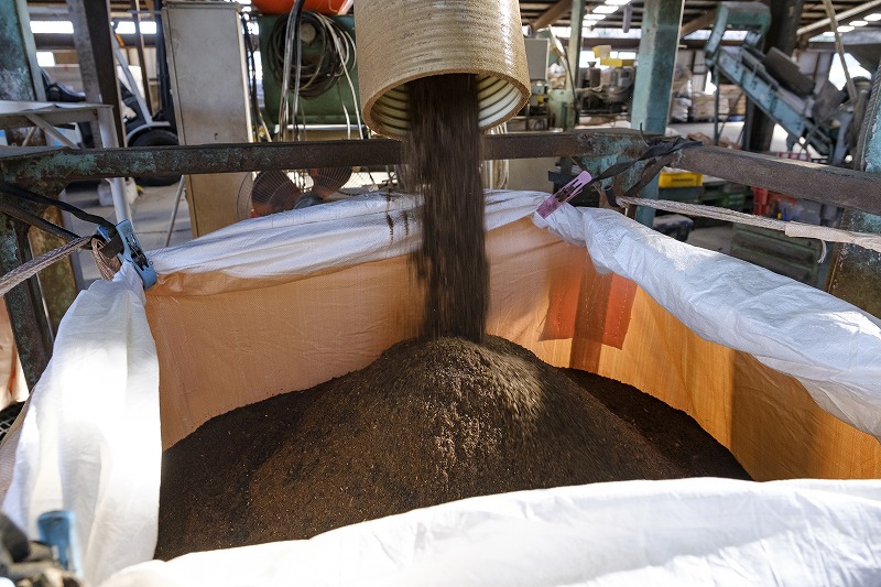 乾燥・破砕した食品製造副産物(写真は米ぬか)を飼料の原料として利用する